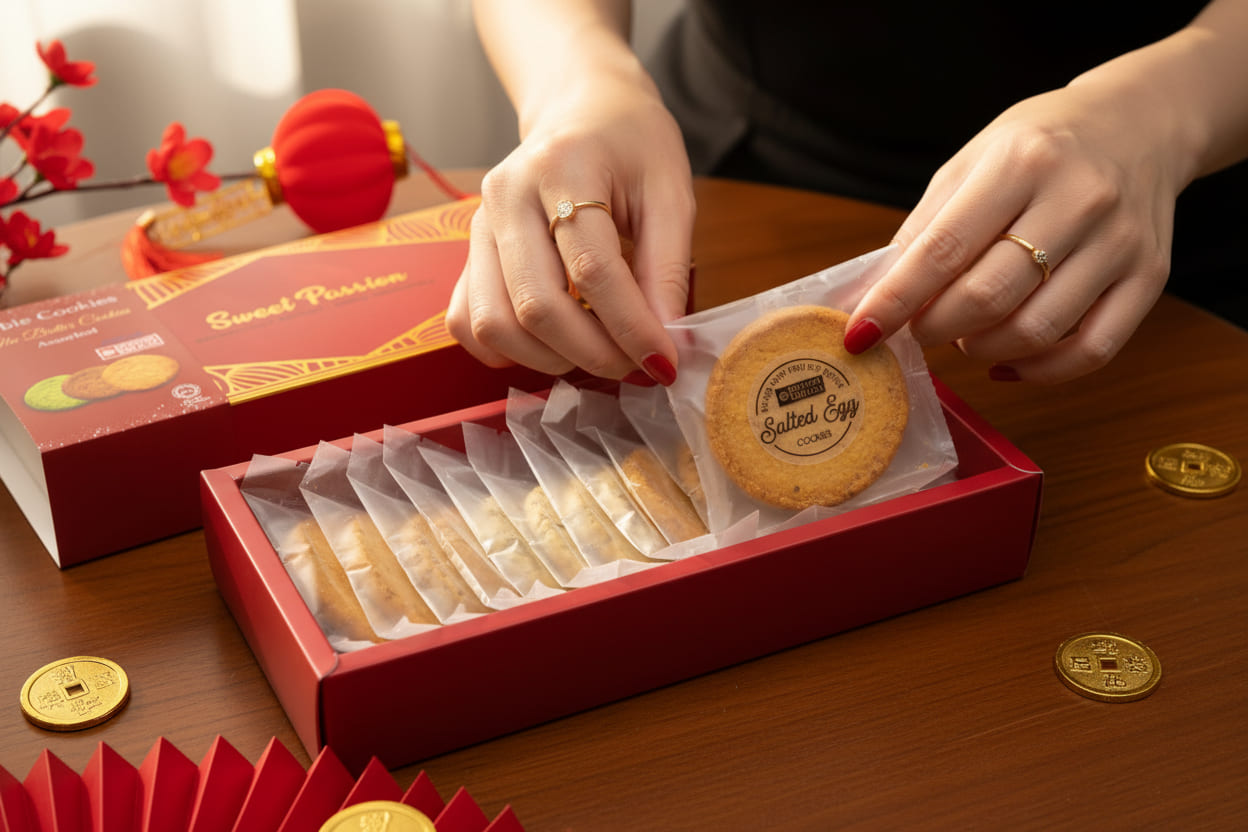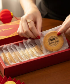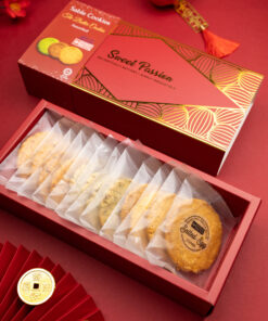A savoury assortment of delicate sablé cookies made with French butter, featuring Nasi Lemak, cheese & scallion, and salted egg flavours. Crisp and crumbly with rich buttery depth, finished with a soft golden touch for this Lunar New Year